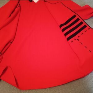 NWT FINITY M Red/Black Striped Cardigan One Button Long Sleeve Knit Open