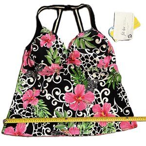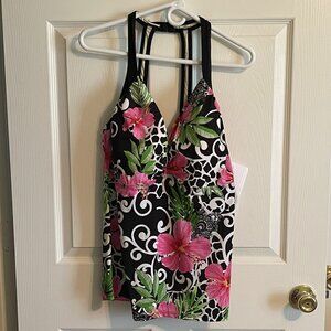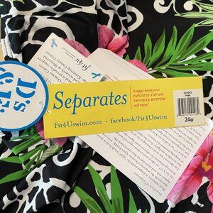 NWT FIT 4U WOMENS TANKINI Plus Sz 24W BLACK WHITE w PINK GREEN FLORAL PRINT 1143