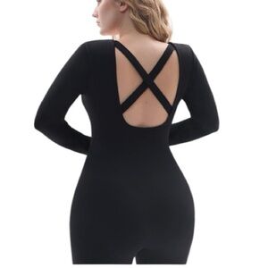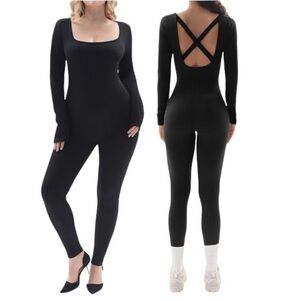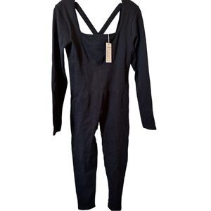 NWT FITTIN Women Long Sleeve Jumpsuits: Ribbed Square Neck Bodycon One Piece