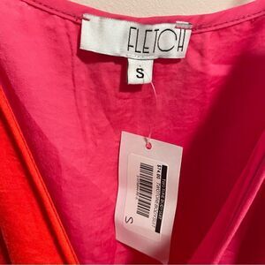 NWT FLETCH Two Tone Bodysuit Red & Pink Satin- Size Small