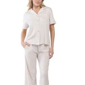 NWT FLORA BY FLORA NIKROOZ 2pc Iman Ribbed Notch Collar Pajama Set