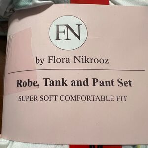 NWT FLORA NIKROOZ Medium 3 Piece Sleep Set Robe Tank Pant Super Soft Green White