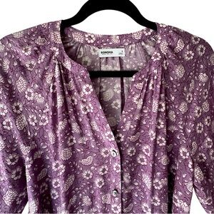 NWT | FLORAL RUFFLE HEM BOHO DRESS BUTTON FRONT TIE WAIST PURPLE | SIZE: SMALL