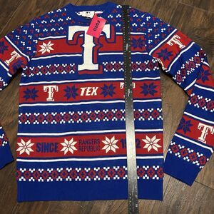 NWT FOCO Christmas Sweater Texas Rangers Red White Blue MLB Small
