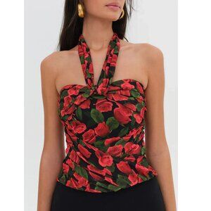 NWT FOR LOVE AND LEMONS ABBY STRAPLESS ROSE PRINT CORSET TOP SIZE S