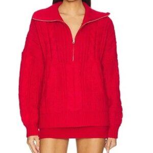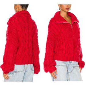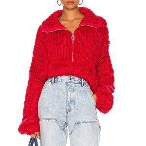 NWT FOR LOVE AND LEMONS ANDIE ZIP FRONT RED CABLE KNIT SWEATER #2 SIZE M
