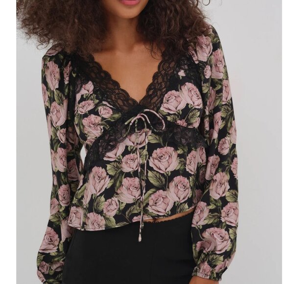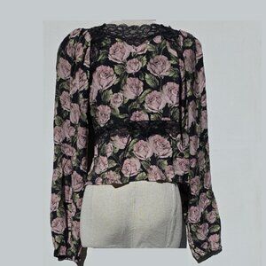 NWT FOR LOVE AND LEMONS CLARISSE LONG SLEEVE V-NECK ROSE PRINT BLOUSE SIZE M