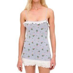 New with tag. You'll love this darling For Love & Lemons mini dress. It features a sweet gingham print and a swingy A-line shape. Details include a V-neckline, a ruffled shawl collar with a ribbon bow, and short puff sleeves. The dress has a full skirt with lace trim. 64% Viscose, 36% Polyester Not lined; easy pullover styling.