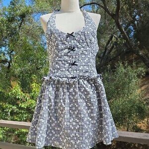 NWT FOR LOVE AND LEMONS JANICE BLACK & WHITE GINGHAM HALTER MINI DRESS SIZE S