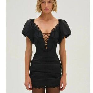 NWT FOR LOVE AND LEMONS SINGRID BLACK PLEATED MINI DRESS SIZE S