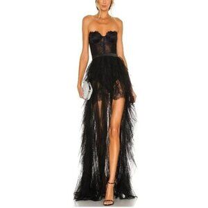 NWT FOR LOVE & LEMONS BUSTIER BLACK TULLE & LACE STRAPLESS GOWN DRESS SIZE S