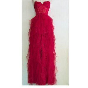 NWT FOR LOVE & LEMONS BUSTIER RED TULLE & LACE STRAPLESS GOWN DRESS SIZE S