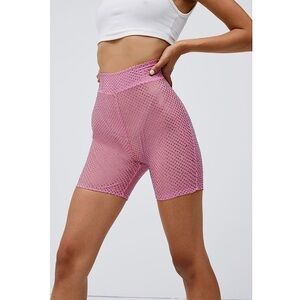 NWT FOR LOVE & LEMONS Rhinestone Sheer Mesh High Waist Barbie Pink Bike Short XS