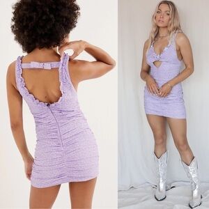 NWT FOR LOVE LEMONS Y2K Ruched Ruffle Neck Bow Trim Sleeveless Cutout Bodycon S