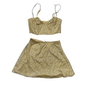 NWT FOR LOVE & LEMONS gold Glitter Grid Bustier Top skirt 2 piece set size XS