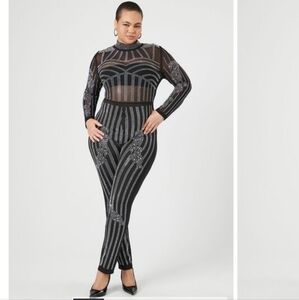 NWT FOREVER 21 3X Rhinestone Mesh Jumpsuit
