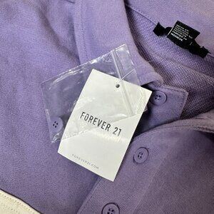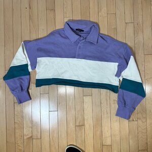 NWT FOREVER 21 Cropped Rugby Stripe Collared Sweatshirt Size Medium