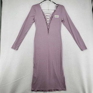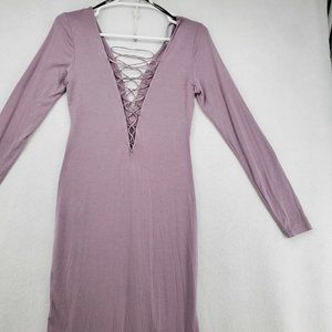 NWT FOREVER 21 Dress Women's Lace up Bodice & Back V-Neck Purple Large