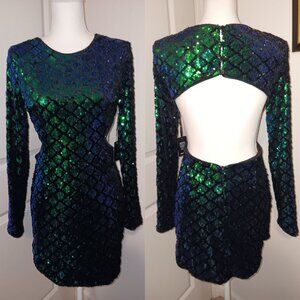 NWT FOREVER 21 Mermaid Sequin Open Back Mini Dress - After Dark Collection - Size M