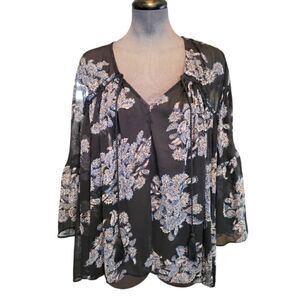 NWT FOREVER 21 CONTEMPORY SHEER PAISLEY BOHO FLOWY WOVEN BLOUSE SZ. L