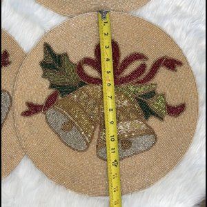 NWT FOUR Christmas Bells Holiday Bead Embellished Placemat Chargers