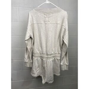 Keywords: Free People romper, V-neck romper, drawstring waist romper, long sleeve romper, heather grey romper, casual romper, loungewear romper, Free People clothing, women's romper, size S romper, comfortable romper, stylish romper, athleisure romper