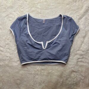 NWT FP Movement Pipe Dream Baby Tee Dusted Cerulean/White Contrast Trim Crop Top – Women’s M