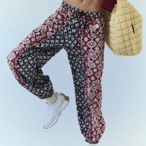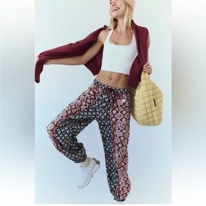 NWT FP Movement Printed Set Me Free Pants Sz M Espresso Revived Dark Brown