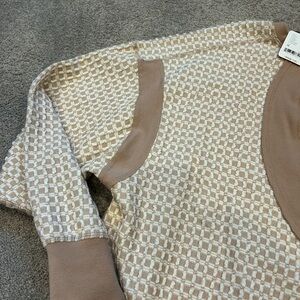 NWT -- FP movement- beige and white knit open back top - Size medium. Original price $78, paid $68