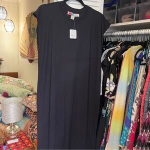 Free People FP Beach size small black t-shirt maxi dress. Solid black with split hem and pockets. New with tags