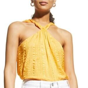 NWT FRAME 100% Silk Draped Crinkle Halter Neck Top Sz S