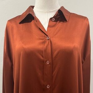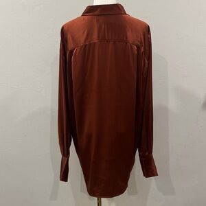 #Frame #SilkShirt #LuxuryStyle #NWT #DesignerTop #RustSilk #WorkwearChic #EffortlessLuxury #SilkBlouse #PoshmarkFinds