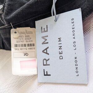 NWT FRAME Black Le Mini Embellished Crystal Stud Raw Hem Denim Mini Skirt Sz 30
