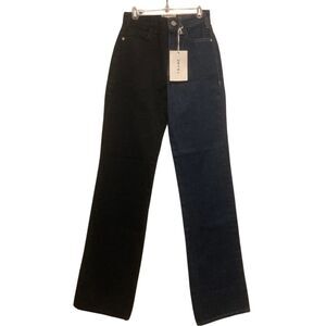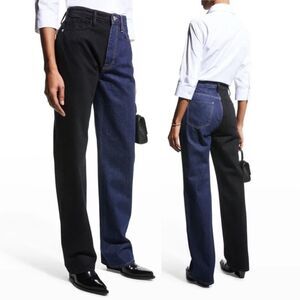 NWT FRAME Denim Le Jane Colorblock High Waist Relaxed Jeans Dell Noir