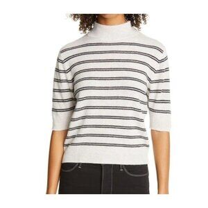 NWT FRAME Size L Stripe Wool & Cashmere Crop Sweater In Oatmeal MSRP$295