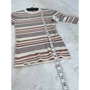 NWT FRAME Size XS striped Ribbed knitted Crew neck cropped top Off white Multi