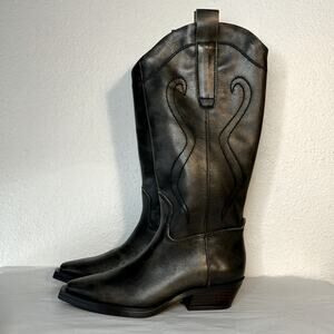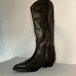 NWT FRANCO SARTO Womens Black Pull Tabs Liandra Leather Western Boot size 5