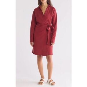 NWT FRANK & EILEEN Willa Triple Fleece Wrap Dress Cranberry Size Small