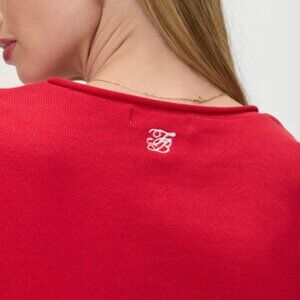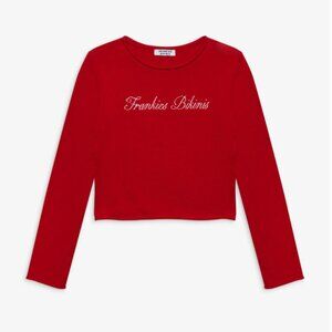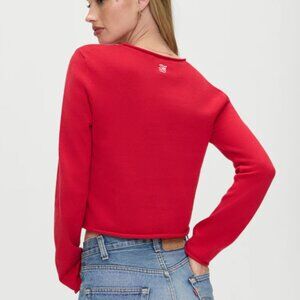 NWT FRANKIES BIKINIS Kennedy Cotton Knit Sweater, Red Heartstrings, size L