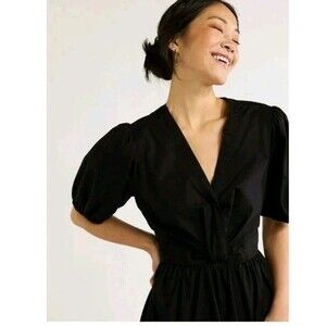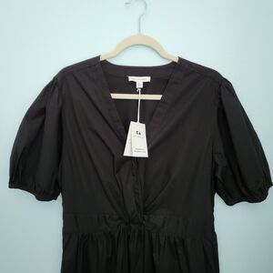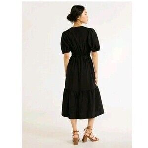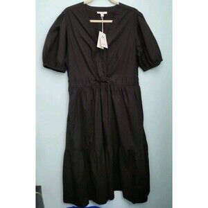 NWT FREE ASSEMBLY Dress Womens L Black Midi 100% Cotton Puff Short Sleeve Boho