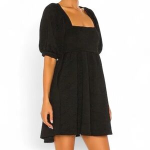 NWT FREE PEOPLE Black Violet Puff Sleeve Tie Back Mini Dress Size Small