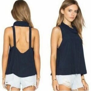 NWT FREE PEOPLE CITY LIGHTS COWL TOP SLEEVELESS TANK BLUE NAVY XS