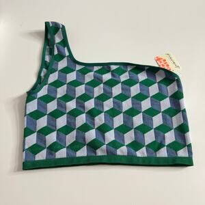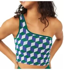 NWT FREE PEOPLE FP MOVEMENT Free Throw One Shoulder Jacquard Crop Viridian M/L