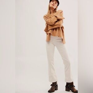 NWT FREE PEOPLE In My Feelings Velvet Crop Slim Flare Pants White Size Large