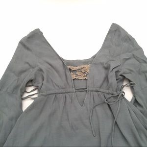 NWT Beautiful Boho dress with wide bell sleeves that are the focus of this super cute foley mini dress featuring crochet detailing . Low back with cutouts and hip pockets. Adjustable side ties allows for a more perfect fit. Lined. *60% Viscose *40% Rayon. Machine wash. 💋BUNDLE AND SAVE MORE💋