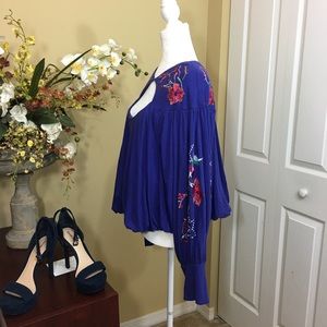 Elevate your wardrobe with this stunning NWT Free People blouse, available in sizes XS, S, and M. Designed in a rich royal blue hue, this top features vibrant floral embroidery along the shoulders and down the voluminous balloon sleeves for a bold yet romantic statement.