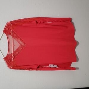 NWT FREE PEOPLE LOLA LaceTrim V-neck Knit Top, Color Rose Crimson, Size…