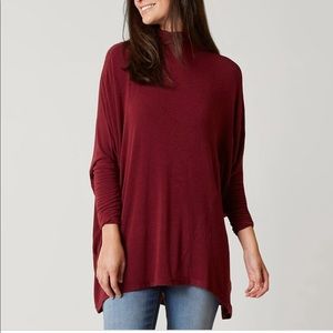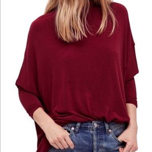 NWT FREE PEOPLE MOCK NECK DOLMAN LONG SLEEVE TOP BURGUNDY Boho Chic Minimalist