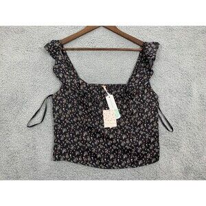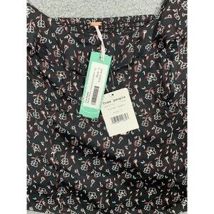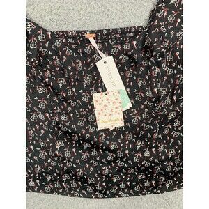 Title: NWT FREE PEOPLE Merile Flutter Detail Ditzy Floral Smock Back Top Black Large