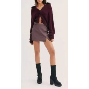 NWT FREE PEOPLE Midnight Magic Mini Skirt in Faux Leather Plum/Prune